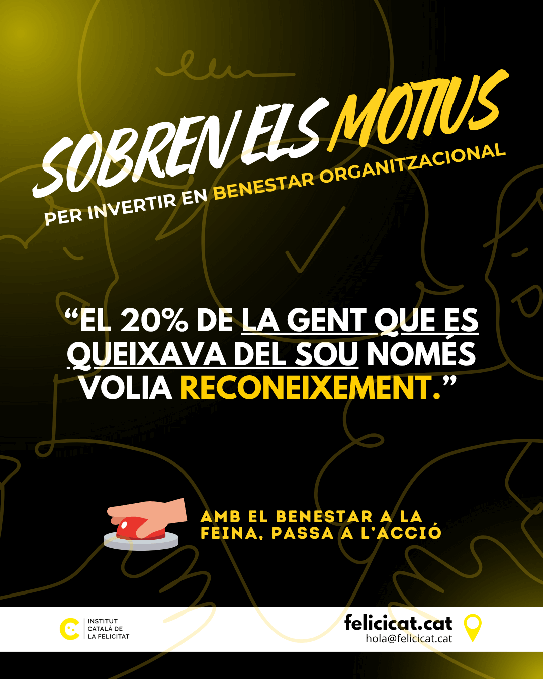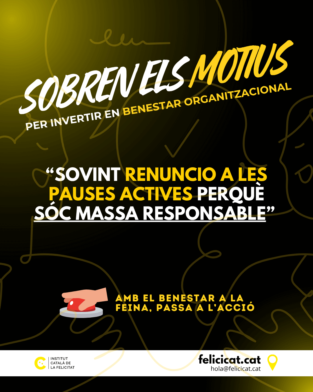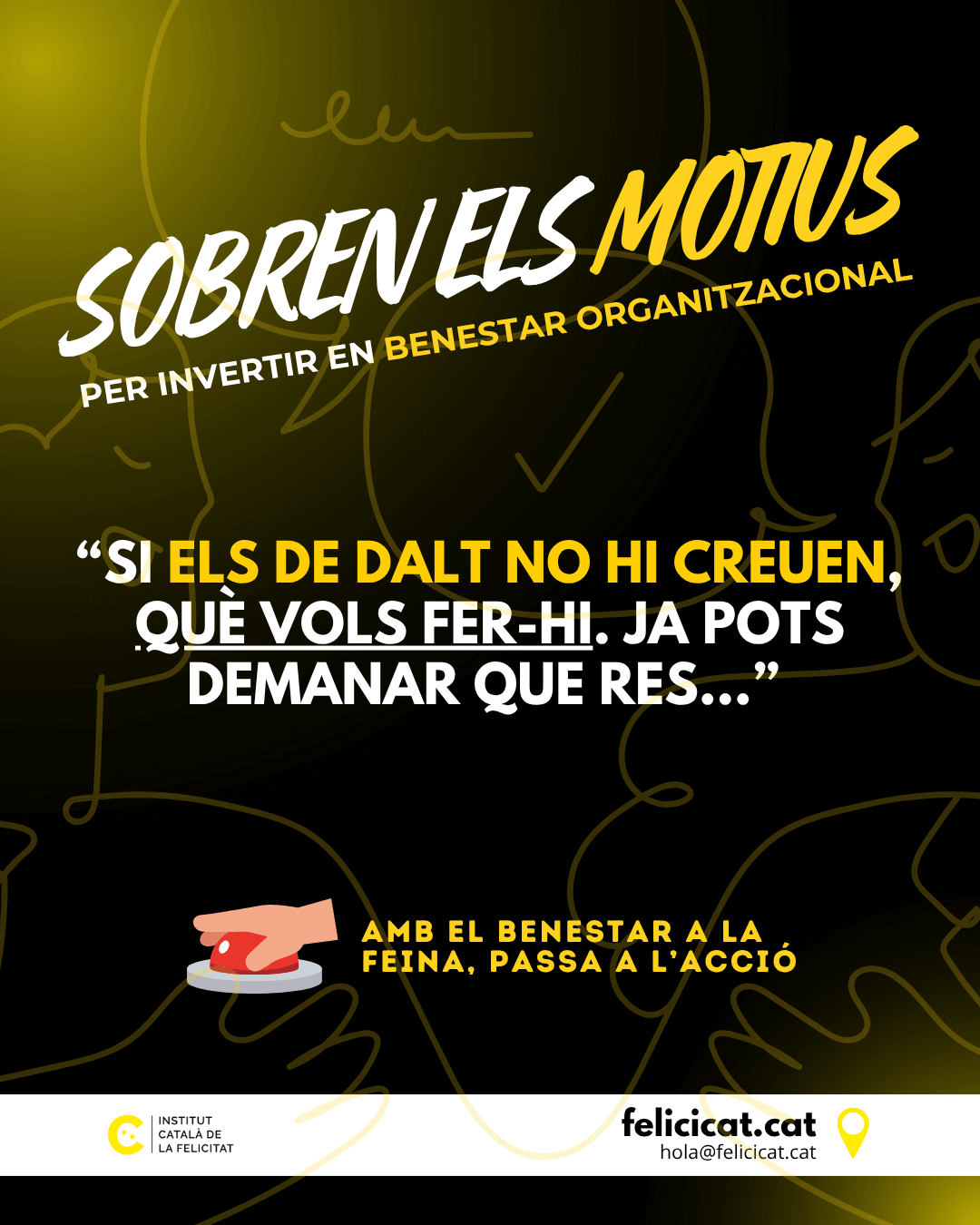 El missatge de fons de “Sobren els motius” és un clar al·legat per continuar fent cultura a les altes esferes de les organitzacions. Durant anys, les inversions en infraestructures, tecnologia o màrqueting han estat vistes com a fonamentals. feliciCat reivindica que la inversió en l’actiu més important, les persones, ha de tenir el mateix estatus, o un de superior.