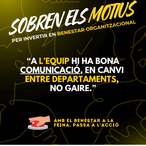 La campanya “Sobren els motius” no pretén redefinir un concepte, sinó que reforça la necessitat de culturitzar i acompanyar a les empreses en tot el procés. L’objectiu no és només convèncer de la necessitat, sinó guiar les organitzacions per dissenyar i implementar un pla de benestar efectiu. Això implica anar més enllà de les accions aïllades i fer servir aquestes dades per entendre la realitat única dels equips i de les persones que formen part de cada empresa. Només a través d’un diagnòstic precís i una implementació feta a mida, centrada en les necessitats reals i no en tendències generals, la inversió en benestar organitzacional serà veritablement efectiva i podrà garantir un retorn d’inversió (ROI) positiu.
